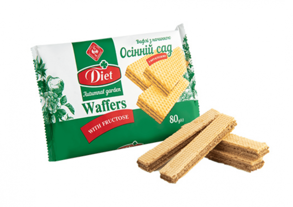 Вафлі з фруктозою Осінній сад (80г/ 34 шт(ящ), Житомирські ласощі - це відмінний варіант для людей, які піклуються про своє здоров'я та фігуру, адже вафлі виготовлені без використання цукру